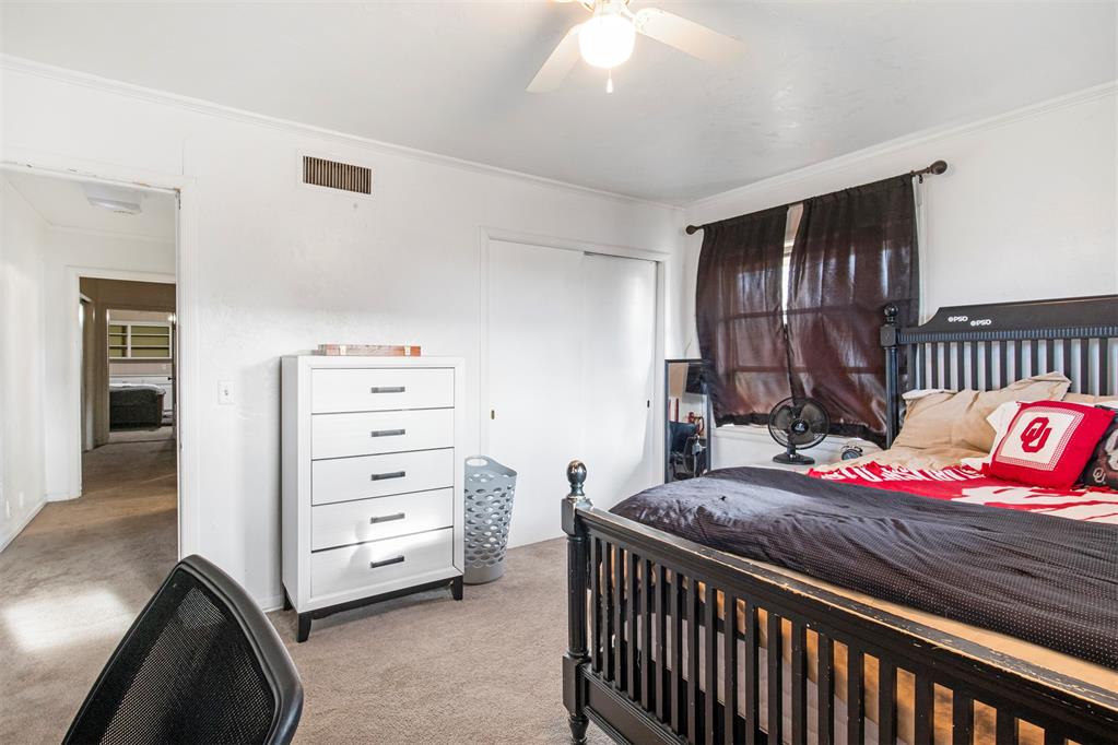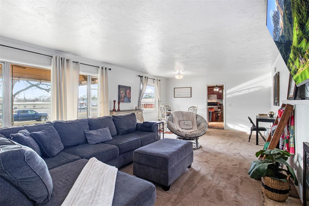 Come see this sprawling 3-bedroom, 2-bathroom home that offers room to live, work, and entertain with ease. Situated on a quiet, tree lined street, this property boasts two generous living rooms and a large flex space perfect for a home office, gym, playroom, or whatever fits your needs. Kitchen includes an island, built in storage, and two pantries. Enjoy peace of mind with a new roof, new wooden fence, fresh exterior paint and metal fascia, and newly refinished hardwood floors. Take in the quiet evenings on the large stone front porch or host all of your friends on your covered patio in the spacious back yard. Owner/agent #202825