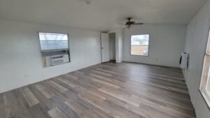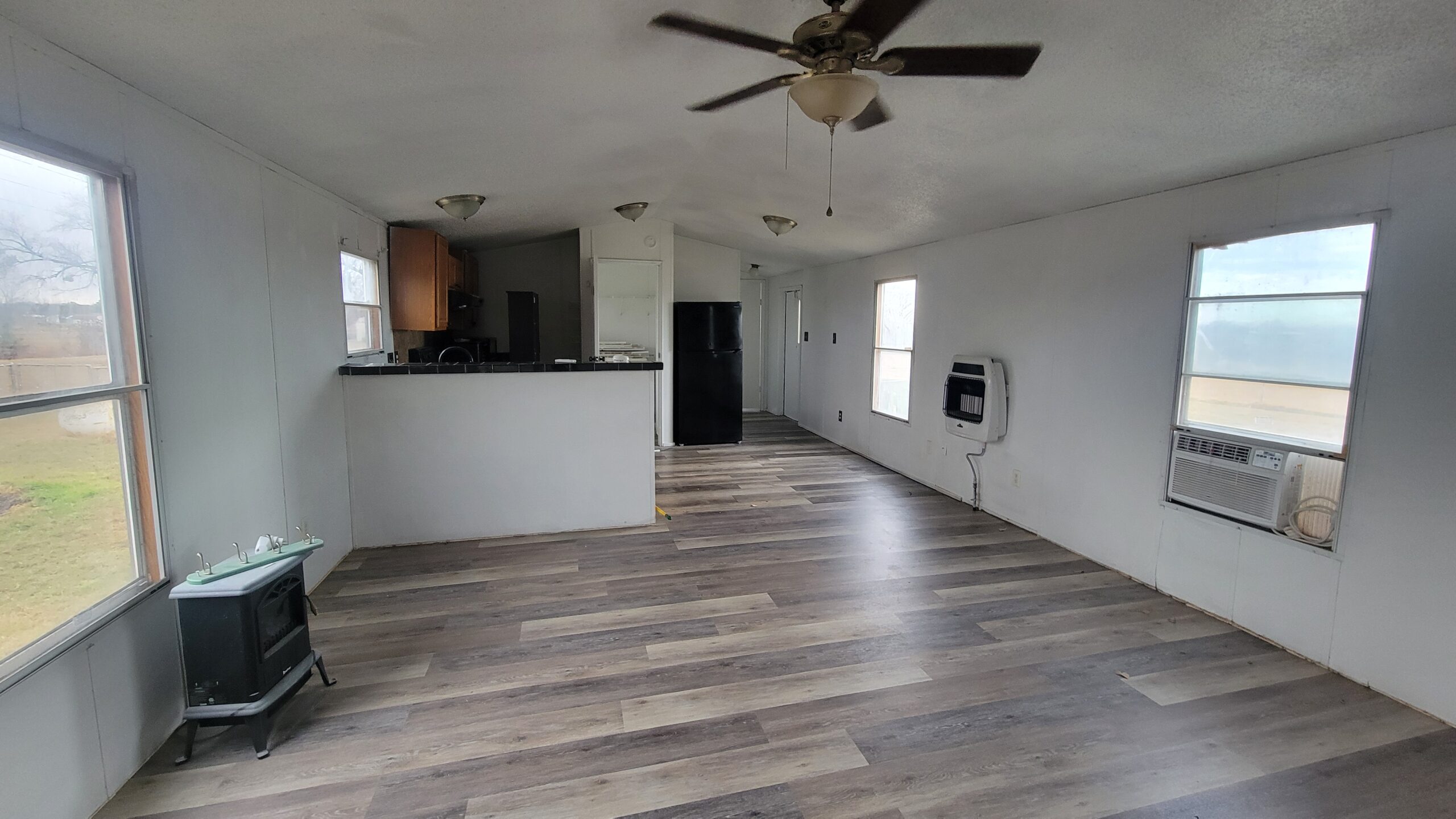 New paint and flooring! 3 bedrooms, 1 bath, mobile home in NRC School District, window A/C and wall heat, large yard